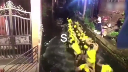 龙舟划行小水渠出意外 撞障碍物落水险侧翻